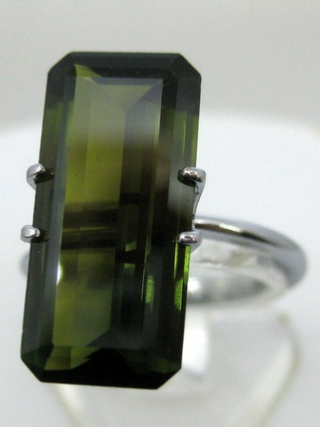 He sliced the rough stone into two pieces; one piece being cut into a spectacular square emerald cut (Octagonal) Green Sapphire of just over 24 carats,